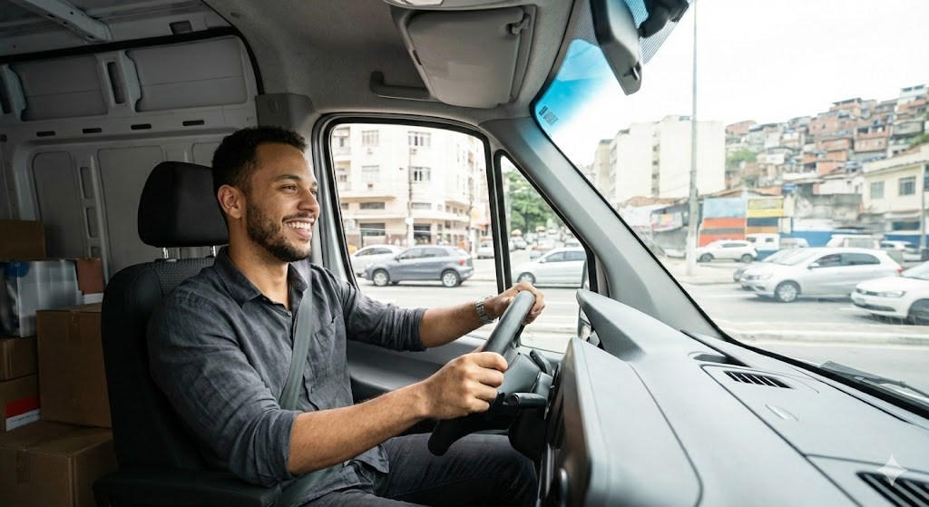 Ao guardar sua van, ative a Cerca Virtual. Se ela for movida ou ligada sem sua permissão, você recebe um alerta crítico no celular.